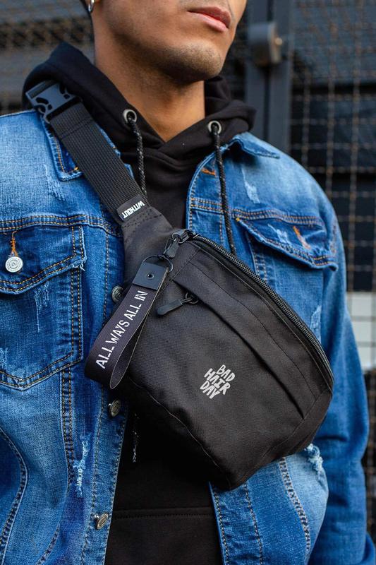 Чоловіча сумка бананка барсетка через плече without з принтом badhair black