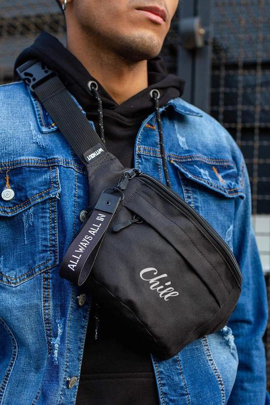 Мужская сумка бананка борсетка через плечо without с принтом chill black