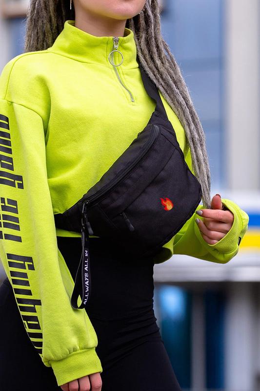 Женская сумка бананка борсетка через плечо without с принтом fire black