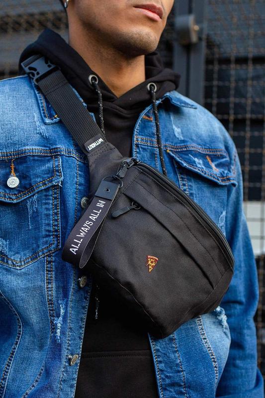 Чоловіча сумка бананка барсетка через плече without з принтом pizza black