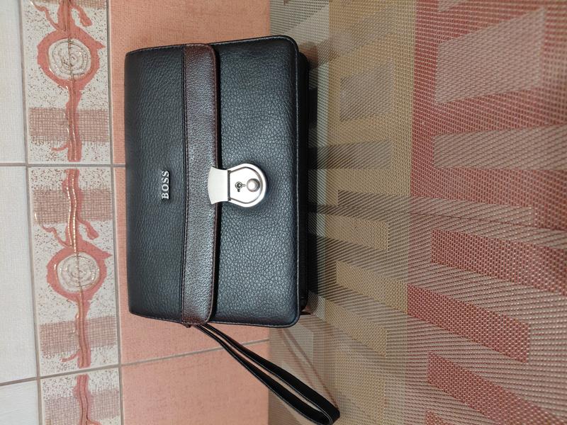 Мужской клатч борсетка BOSS. Размеры: длина-25см, высота-27.5см, ширина внизу-5см(расширяется от наполнения). С задней стороны карман, внутри четыре отделения, отдельно карман на замок. При необходимости скину дополнительные фото.