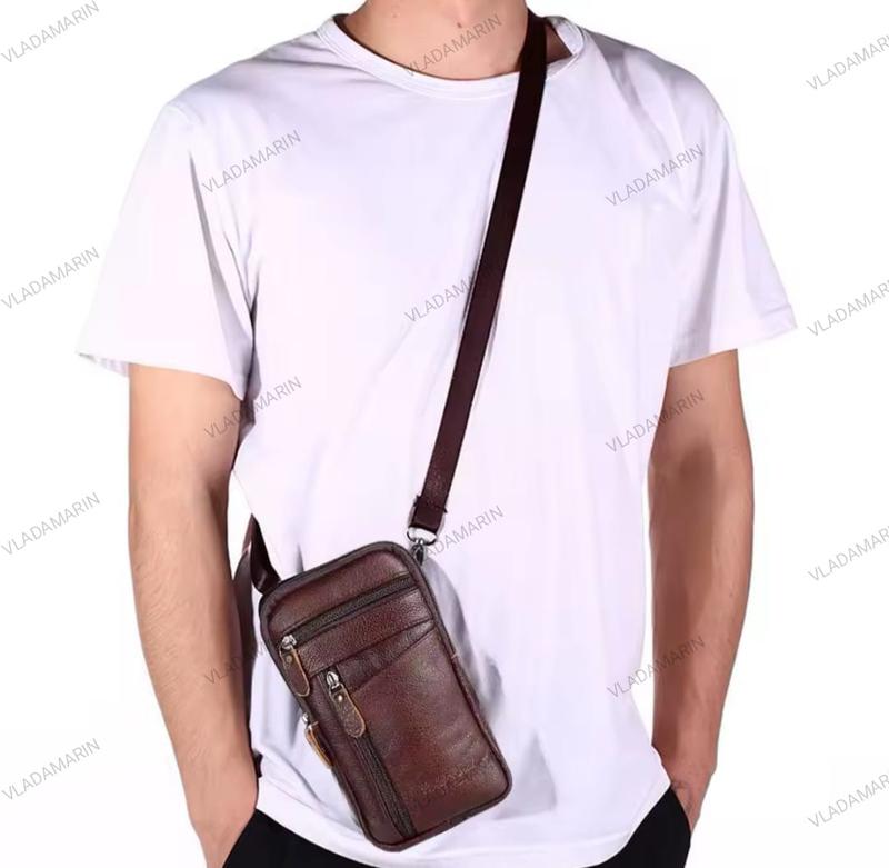 Сумка для смартфона из натуральной кожи, мужская сумка через плечо кросс боди, борсетка ко...