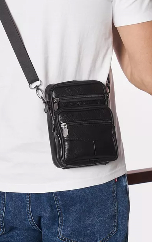 Цвет: черный Материал: натуральная кожа флотар премиум качества Размер (ШхВхГ): 19 × 16 × 4 см Основное отделение на молнии для личных вещей. Потайной карман на задней стенке для документов или денег. Внешний карман на тыльной стороне на молнии. На лицевой стороне накладной кармашек на молнии; два дополнительных встроенных кармана на молнии для мелочей и аксессуаров. Регулируемый текстильный ремешок для удобного ношения через плечо.