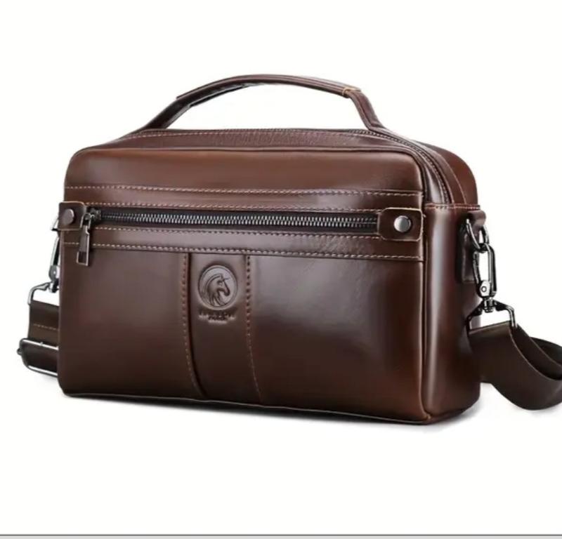 Мужская сумка Rainbow Horse из винтажного верхнего слоя коровьей кожи с масляным воском – регулируемая наплечная, с многослойным дизайном, прочная и легкая в уходе для активного отдыха, повседневного использования – многофункциональная для документов, ноутбука и ценностей. Цвет "кофе"