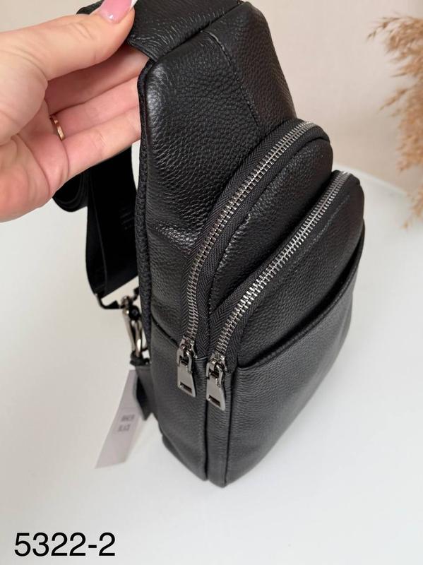 Новинка Чоловічий шкіряний слінг🔥 Код 5322 Натуральна шкіра 16х29 Регульований текстильний ремінь на карабіні (можливість носити на дві сторони