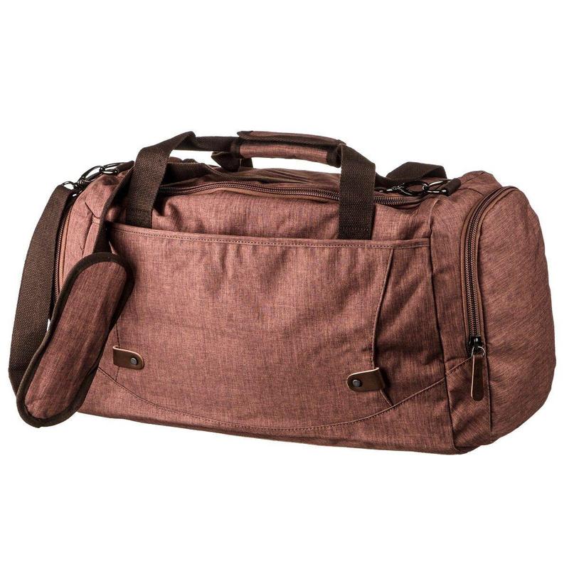 Дорожная сумка текстильная коричневая ✅ Материал: текстиль ✅ Цвет: коричневый ✅ Размеры (ШхВхГ, см): 46х30х21 ✅ Страна производитель: Китай ✅ Особенности: - основное отделение на молнии с потайным карманом на молнии и двумя накладными карманами ✅ накладной карман на молнии на лицевой стороне аксессуара ✅ карман на молнии на тыльной стороне ✅ два боковых кармана на молниях ✅ текстильный регулируемый ремешок на плечо ✅ уплотненное дно с защитными ножками ✅ подкладка из коричневой ткани ✅ Вместительная сумка подойдет как мужчине, так и женщине. Производство - фабричный Китай высокого качества. Изделие удобно носится в руках не натирая при этом ладони или на плече. Изделие дополнено всем необходимым функционалом для ваших мелочей. Внутри - качественная текстильная подкладка. Модель с качественной фурнитурой.