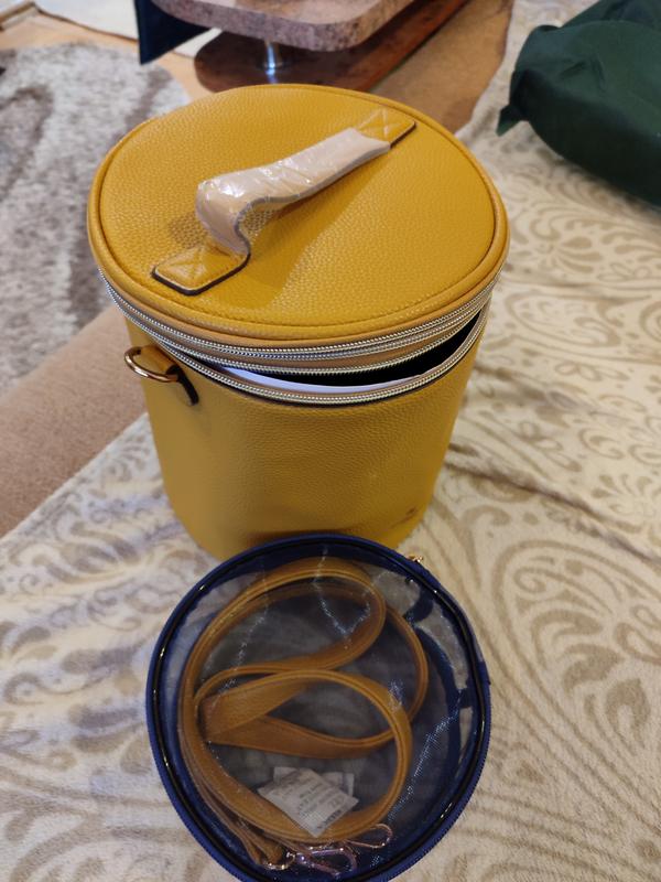 Двухъярусный кейс цилиндрической формы – образец «умного» хранения бьюти- средств. Два отделения: верхний (крышка) с резинками для фиксации кистей и основное отделение с резинками по периметру для фиксации продуктов, внутренняя косметичка (можно использовать отдельно). Можно носить как клатч. Размер: 19 х 22,5 см. Материал: PU (полиэстер), вес - 490 г.