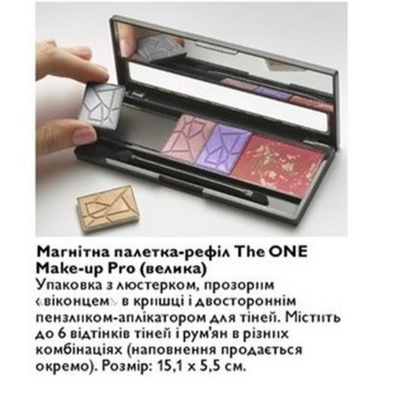 Первая палетка The ONE, которую ты можешь собрать сама — как настоящий визажист! Выбирай из 16 профессионально подобранных оттенков, меняй их по настроению и создавай трендовые образы. - Имеет зеркало в крышке и двустороннюю кисточку-аппликатор для теней; - Вмещает до 6 оттенков теней или румян в различных комбинациях (продаются отдельно). - Выбери один из четырех вариантов наполнения палетки: 3 оттенка румян, 6 оттенков теней, 1 оттенок румян + квартет теней, 2 оттенка румян + дуэт теней. - Выбери нужные оттенки из коллекции рефилов. Тени представлены в 13 оттенках с матовым и перламутровым финишем и подходят для сухого и влажного нанесения. Мраморные румяна выполнены в 3 оттенках и сочетаются с разными тонами кожи. - Зафиксируй рефлы в палетке и меняй наполнение так часто, как ты захочешь. - Модные тенденции, универсальные решения на каждый день и секреты мастерства бьюти-экспертов - бренд The ONE поможет тебе перенести образы из подиума в жизнь!