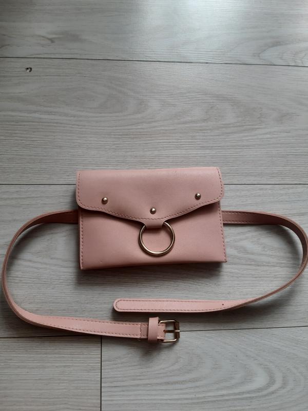 Невеличка сумочка на ремінці, можна носити як з ним так і без,він знімається. Є три відділення,можна покласти телефон,гроші,ключі,серветки,