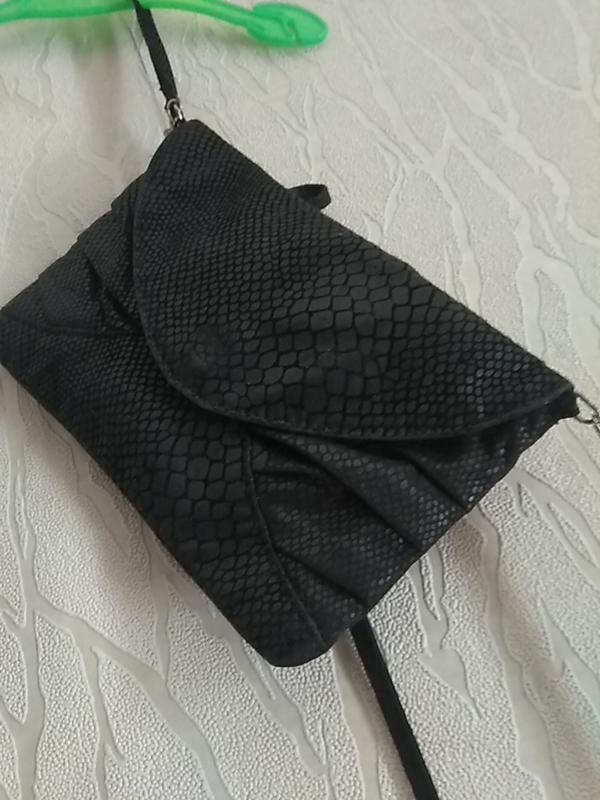 Сумка клатч на длинном тонком ремешке черная