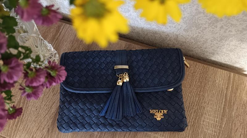 Синій клатч 26×16 Якісний матеріал Золотиста фурнітура Два відділення Має дві ручки, довгу та коротку