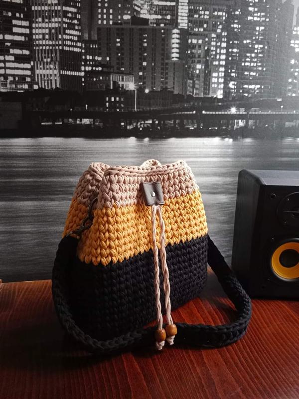 Стильна сумка ручної роботи,яка доповнить Ваш образ. Зроблена з трикотажної пряжі,можливе виконання з бавовняної та поліефірної пряжі. Під замовлення