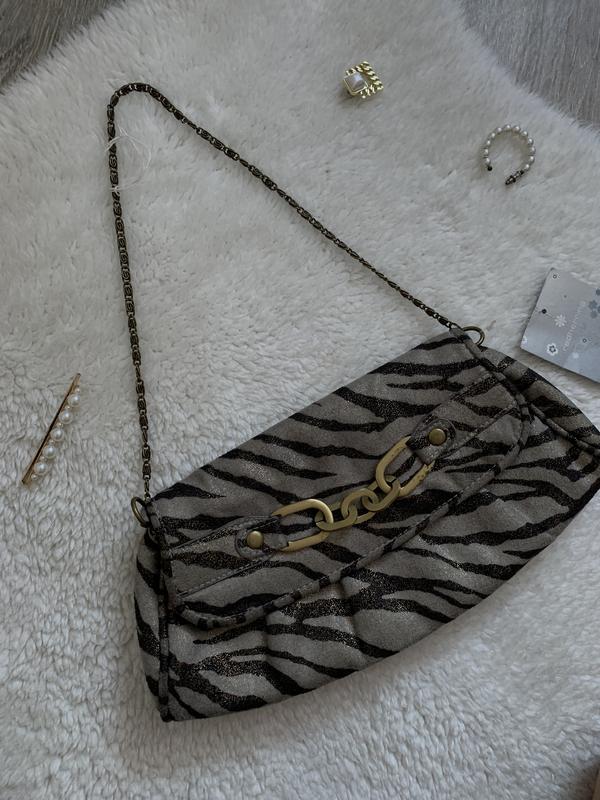 Дуже стильний клатч від Red Herring ❤️ В естетичний принт. На магнітній застібці. В середині маленький карманчик на блискавці. Під замшу. Гарно переливається блискітками. Нова 🔗 Довжина - 29 см; Висота - 15 см;