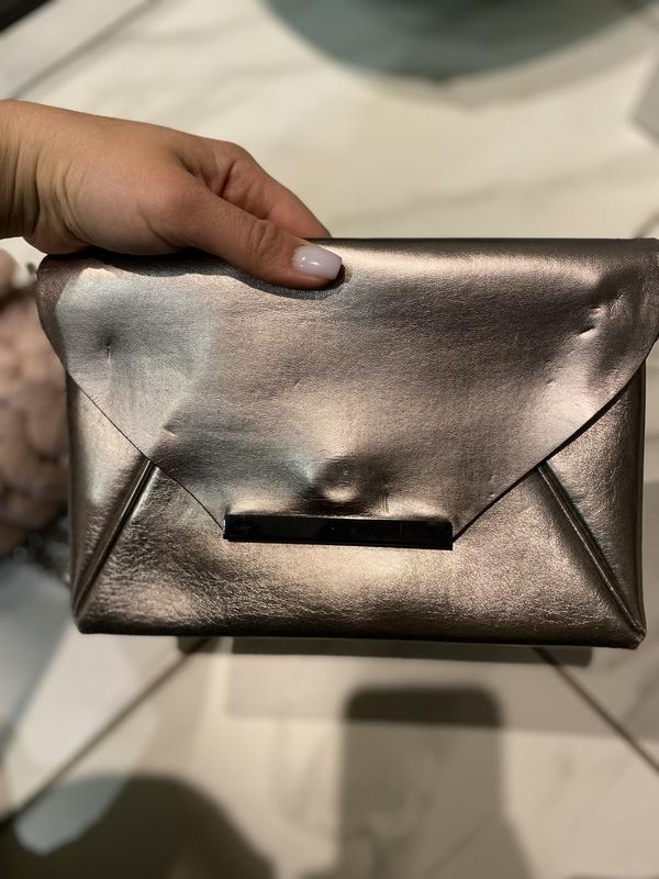 Сумочка-клач срібного кольору. На цепочке. Є заломи. Єко-шкіра