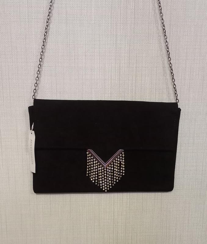 Продам клатч сумочку Accessorize, з екозамш чорного кольору, в ідеальному стані без дефектів та слідів використання. Заміри є на фото.