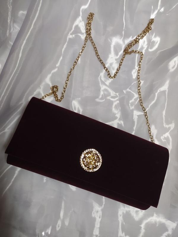 Клатч Bovdea Бархат, бордо Золотистая цепочка Украшение золотистое со стразами На одно отделение Застежка магнит
