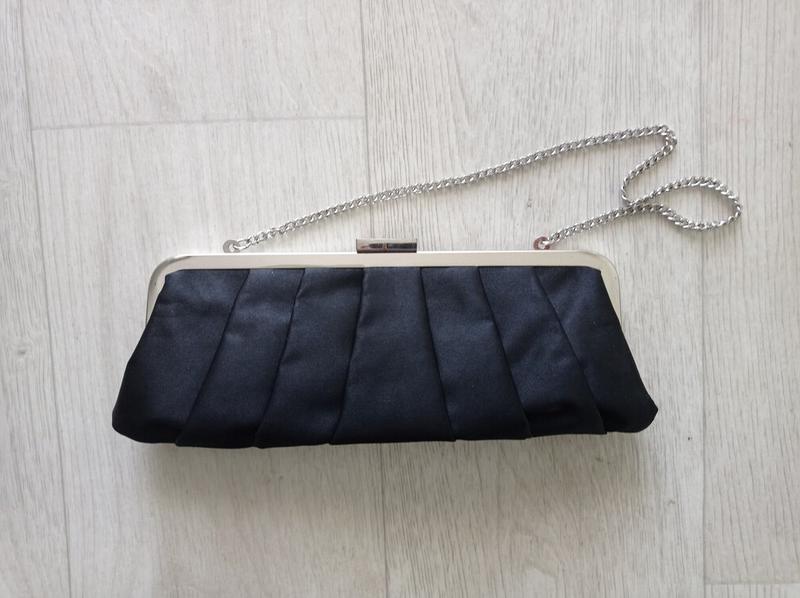 Клатч Dolcie. Длина по низу ок 25 см. Высота ок 9 см. Ремешок ок 45 см. Есть царапина на замке. По серебристой части мелкие царапинки. На подкладке в нескольких местах как пропалено. Доп. фото и описание не делаю. Торга, брони, обмена, наложки, возврата нет.