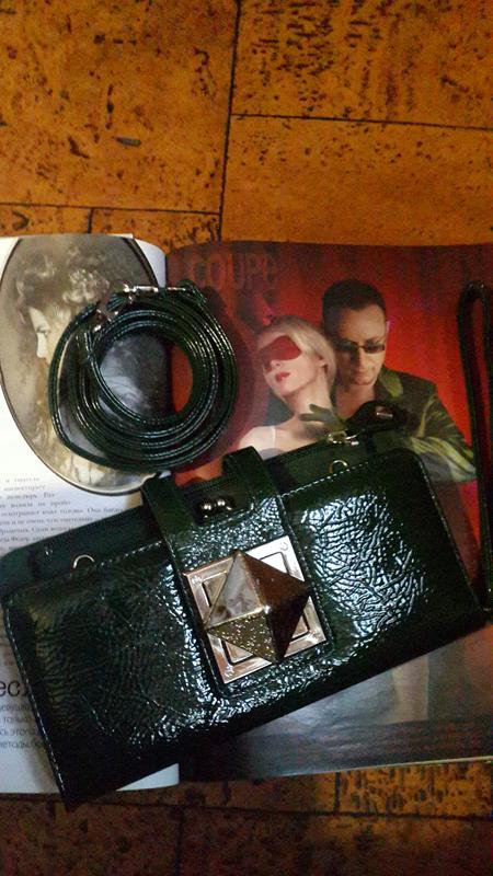 Лаковий клатч Parfois, неймовірного глибокого зеленого кольору стане Вашим улюбленцем. В комплекті коротка і довга ручки на карабинчиках, два окремих відділення: один на блискавці іншого на защипе, візитниця і відділення для карток - можна використовувати, як гаманець. Ширина-22, висота-13, глибина без наповнення пр. 4см. Є дуже малесенький нюанс, абсолютно непомітний, але повинна згадати, не стала витрачати на це фото. Пишіть, із задоволенням відповім на всі питання!