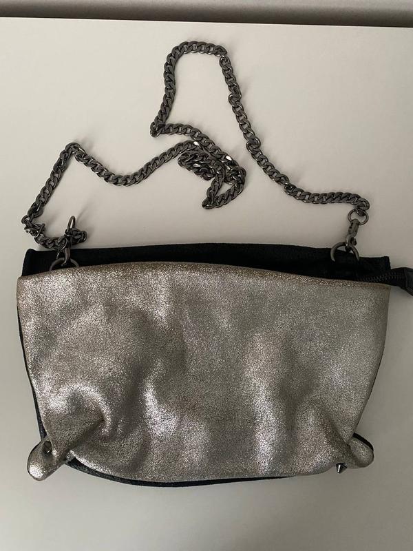 Сумка женская, клатч. С одной стороны серебряного, с другой черного цвета.