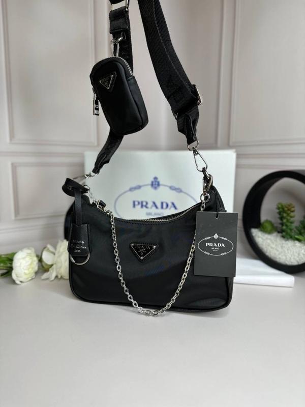 Материал: Нейлон Цвет черный Размер Ш22 х В12 х Т7 Описание: Сумка изготовлена из приятного на ощупь нейлона. На сумке присутствует несъемный регулируемый ремень черного цвета, на нем также небольшой кармашек. Цепочка также можно использовать как ремешок. Внутри одно большое отделение, застежка на молнии. На лицевой стороне сумочки видно фирменное металлическое лого. Вес: 340 гр. Комплектация: При дополнительной доплате можно приобрести подарочную коробку Prada, пыльник, документы, как все вместе, так и по отдельности. Производство: Турция