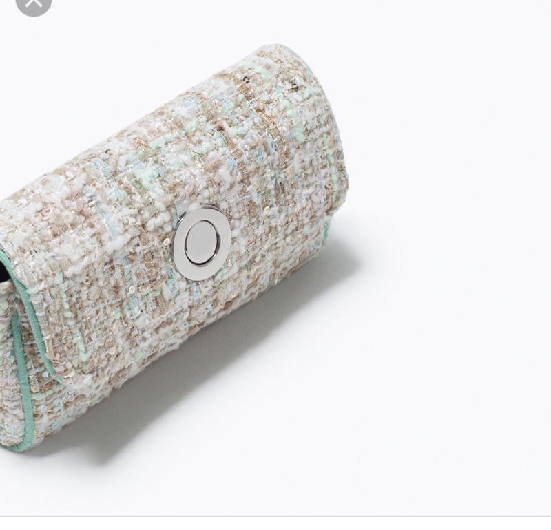 Маленький, стильный клатч Zara, бело-зеленого цвета.
