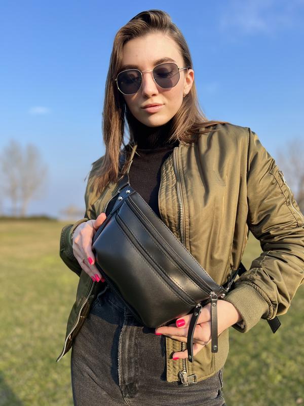 Найпопулярніша модель. Бананка з якісної екошкіри. Вмістка, на два відділення. Пояс регулюється. Розміри: 21 х 15 х 5 см. Для додаткових фото пишіть в Дірект.