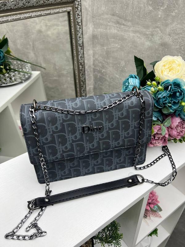 24 см ширина. 17 см высота. 9 см дно. Одно отделение, подоленое пополам перегородкой на молнии. Внутри открытый карман. Длина цепочки 125 см.