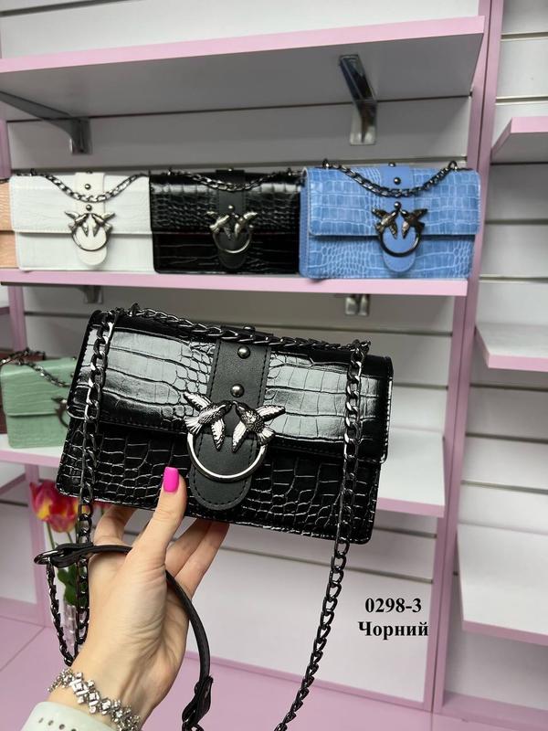 ❤️В НАЯВНОСТІ ❤️ Код 0298-3. Эко кожа с крокодиловым принтом. 23 см ширина. 14 см высота. 8 см дно. Клапан на магнитах. Внутри одно отделение, подоленое пополам карманом на молнии. Длина цепочки 130 см