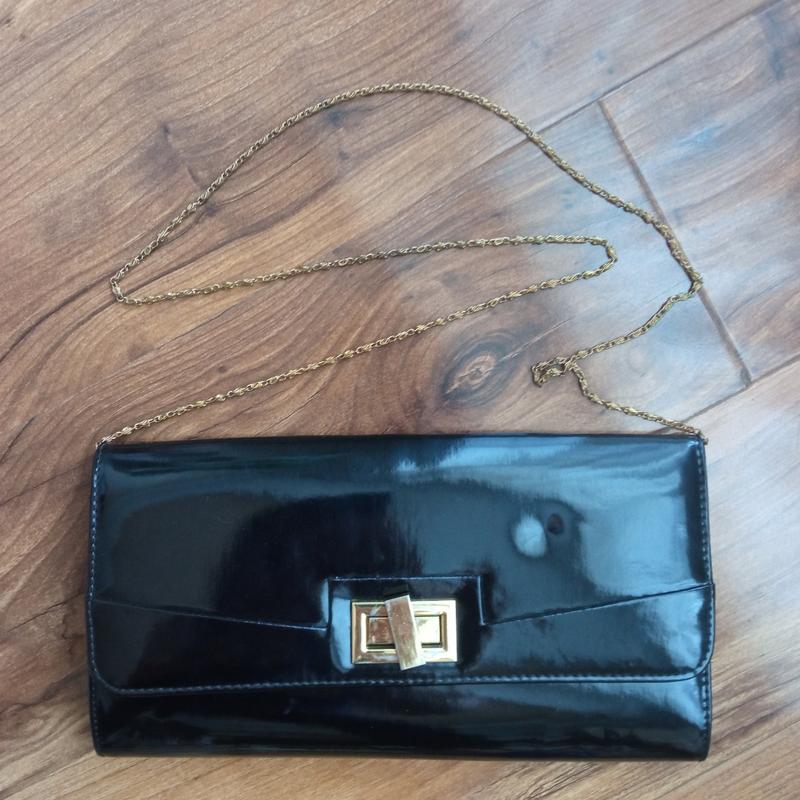 Черная лаковая сумка клатч. хорошее состояние, чуточку стерта застежка. Содержимое.