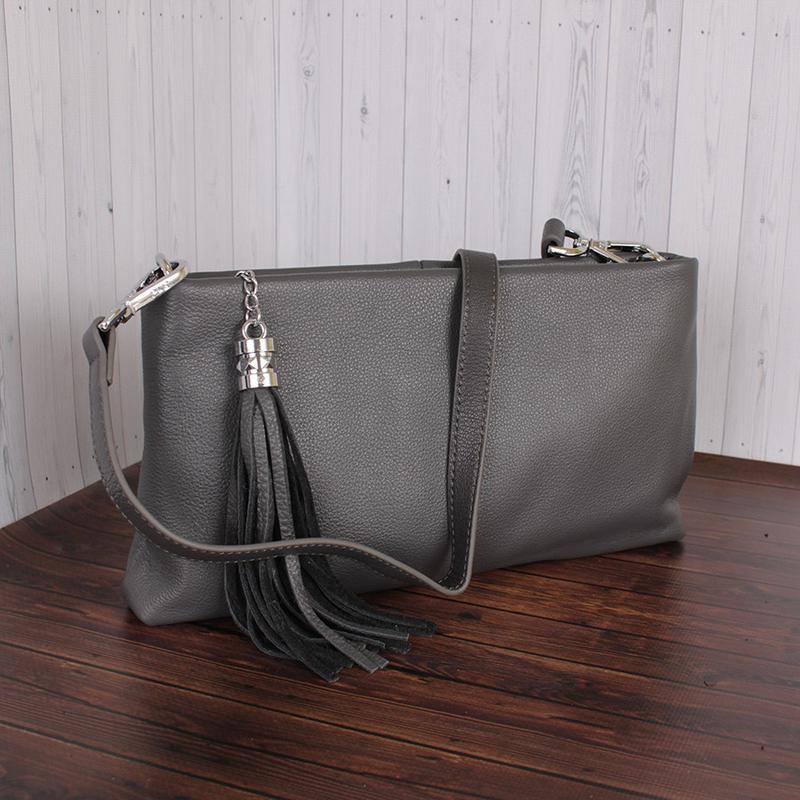 Модний жіночий клатч із натуральної шкіри. Шкіра м'яка, дуже приємна на дотик. Сумочка виготовлена в мінімалістичному дизайні. Бігунок блискавки прикрашений декоративним пензликом з оксамитової шкіри. Усередині 2 відділення та 3 кишені, також є додаткова кишеня на блискавці зі зворотного боку. У комплекті 2 ручки — короткий ремінець і довгий ремінь через плече. Сумочка зручна та красива, вибирайте модні аксесуари чудової якості! - Матеріал верху Шкіра натуральна - Підкладка П/Е - Розмір (В*Ш) (см) 14,5*27,5 - Ширина дна (см) 3 - Кількість відділень 2 - Кишені (шт.) 4 - Ручки 2 - Висота основної ручки (см) 70 - Тип застібки Блискавка