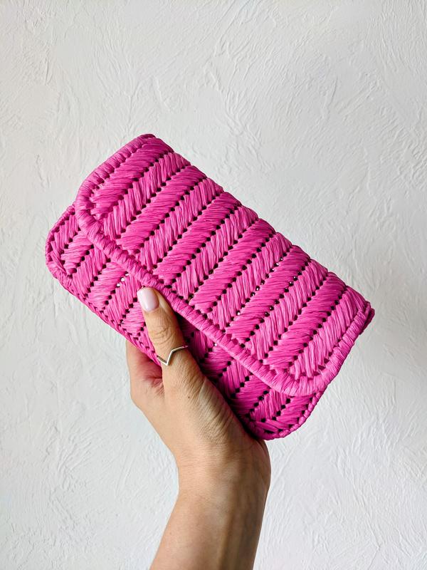 Клатч из рафии. Цвет розовый. Отличный вариант на лето. Размер 18*10*4 см Внутри и снаружи вискозная рафия, не бумага. Застегивается на магнитную кнопку.