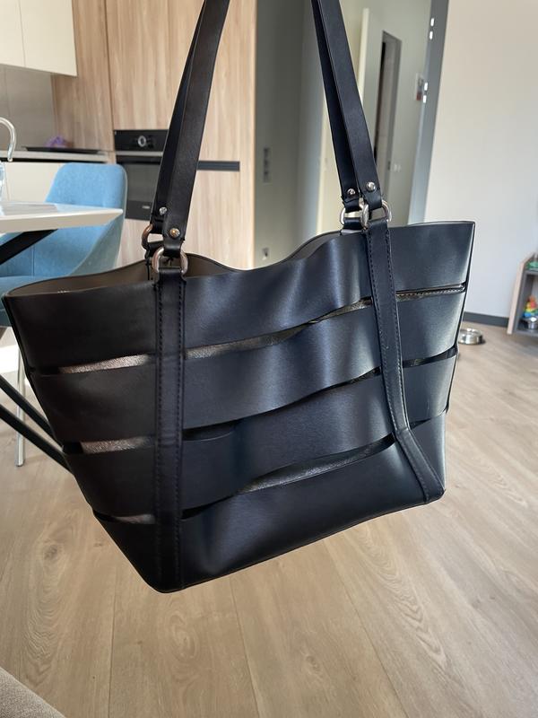 Сумка Guess оригинал. Купувала за 5000. Продам за 600 грн. Есть ноансы: 1) грязная внутри(мерно) 2) нет 1 кнопки, которая скрепляет серебристую и черную часть 3) потертые и слегка порованные ручки (только там, где сфотографировано) 4) немножко затертых фурнитура Все недостатки почти не видны Ширина 43, высота 26, сбоку 17