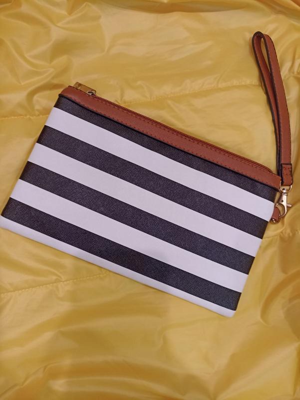 Полосатая косметичка, клатч с маленьким отделением внутри. Замеры: • Ширина: 24см. • Высота: 15см.
