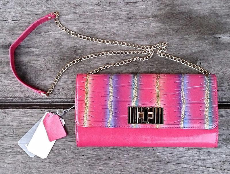 Красивый качественно выполненный клатч на золотистой цепочке. Закрывается на надёжную застёжку. Внутри имеется отделение на замочке, множество отделений под кредитные карты (документы). Цепочка крепится к клатчу застежкой «лобстер» и при необходимости снимается. Новый, с биркой. Размер клатча: - ширина: 27,5 см - высота: 15 см. Сколько клатч стоит на оф.сайте можно посмотреть по ссылке: http://www.yoyomelody.com/vintage-rosy-leather-chain-clutch-bg0010155-2.html