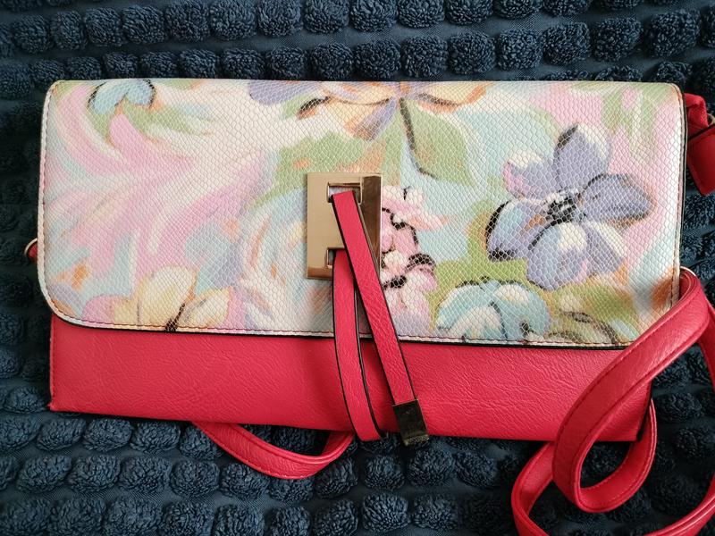 Женская сумка, клатч красного цвета с орнаментом цветов. С ремешком который отстегивается при необходимости. Очень удобная. Имеет 2 отделения в середине.