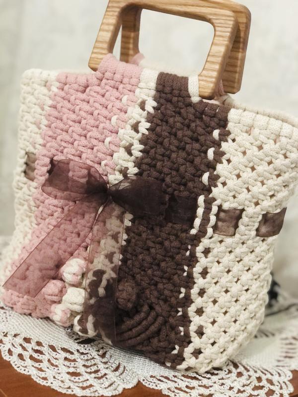 Сумочка выполнена в стиле макраме. Удобная, стильная, универсальная. Выполнена в едином экземпляре. Имеет подкладку и внутренние два кармана для различных безделушек. Використана бавовняна ниточка.