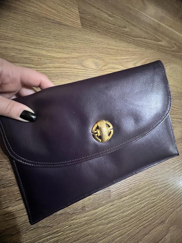 Классический классный клатч...Очень мягкий, приятно держать в руках. Цвет фиолетовый...В середине одно отделение и карман на молнии. Состояние велико!!!! Длина 26см, ширина 17см...