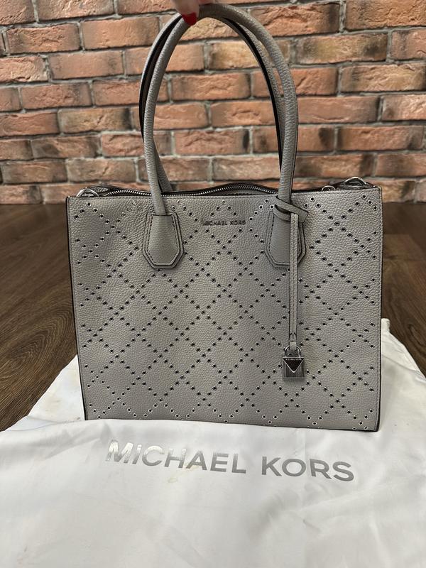 Продаю кожаную сумку Michael Kors серого цвета, оригинал. Отличное состояние. Серебряная фурнитура. В комплекте пледник, сумка и длинный ремешок.