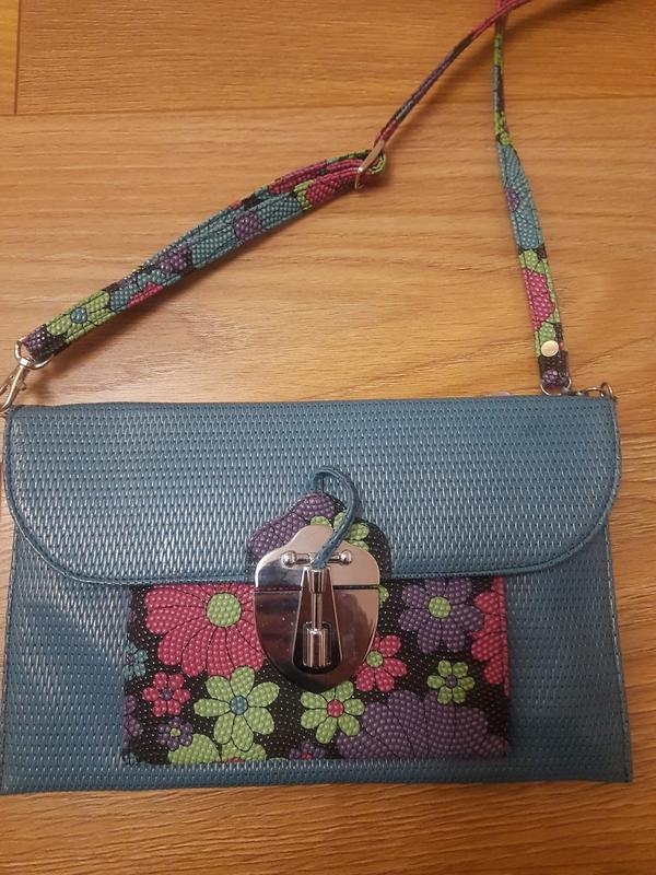 Сумка глубокого голубого цвета с принтом.Шина 28,высота 17.Можно носить как клатч