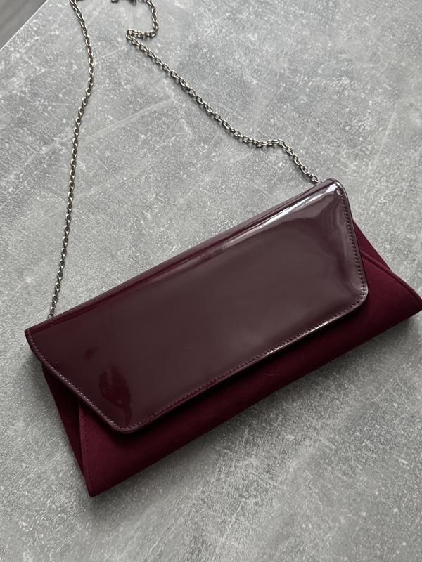 Клатч красивого и глубокого бордового цвета. В идеальном состоянии. Имеет отстегивающийся ремешок Ширина клатча 29см, высота 13,5см, высота ремешка 47,5см