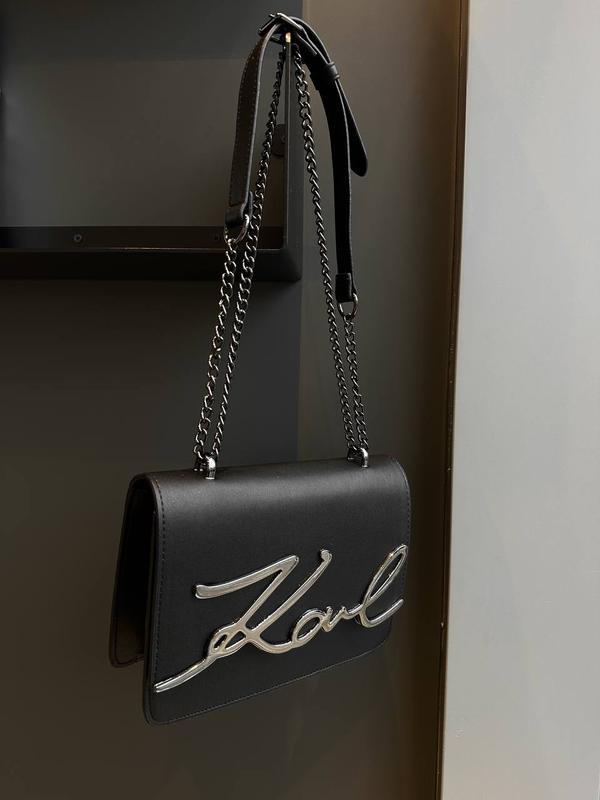 Karl Lagerfeld Signature Black Размер: 23 x 16 x 7 см Материал: эко кожа Описание: Люкс качество! Сумка изготовлена из эко кожи. Спереди расположен металлический логотип бренда. Внутри одно сплошное отделение. На задней стенке есть небольшой карман. Сумка закрывается на двух магнитах. Ремень сумки на карабинах и составляет собой металлическую цепочку. 1241