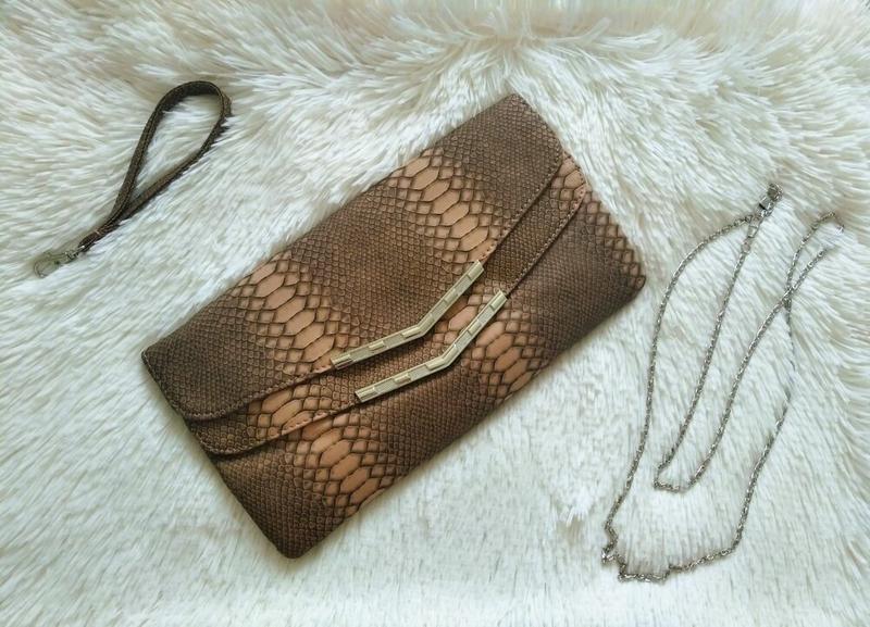 Клатч в цвете кофе в комплекте с цепочкой. размер 30х17см