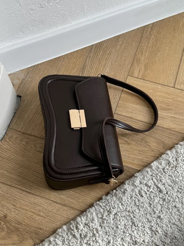 Клатч-багет с асимметрией и прямоугольной застежкой шоколадный