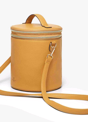 Тип сумки: Каркасні Состоит их двух отделения: верхнее (крышка) с резинками для фиксации кистей и основное отделение с резинками по периметру для фиксации продуктов, внутри находится косметичка, которую можно использовать отдельно. Размер: 19 х 22,5 см. Длина ремешка – 125 см