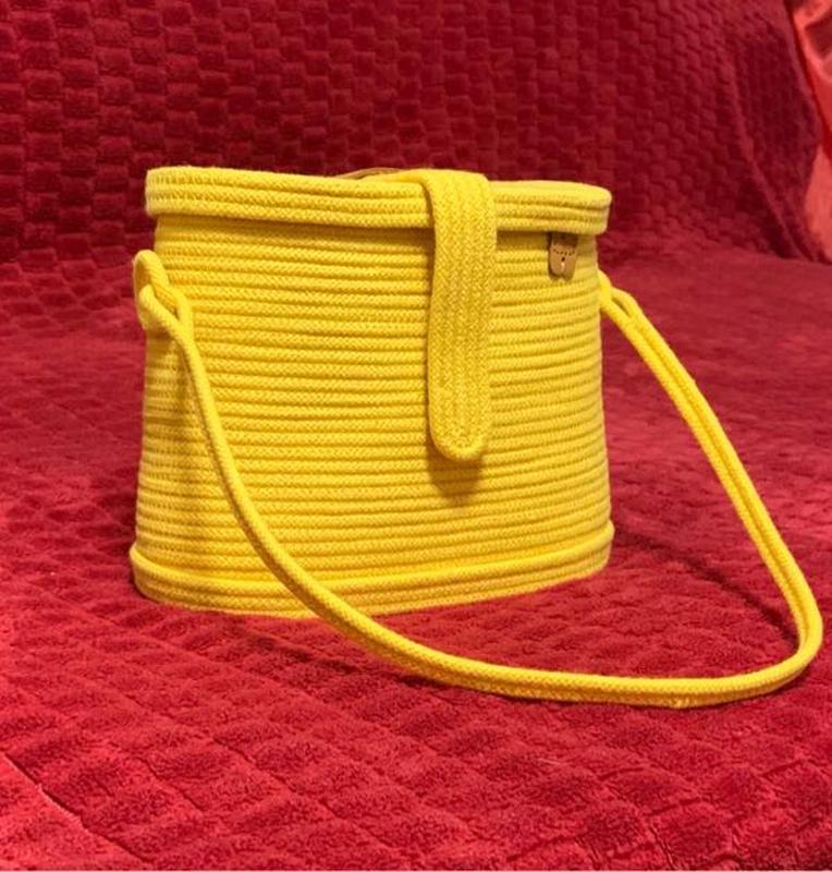 Виробник: Власне виробництво Тип сумки: Інший тип сумки Сумочка жіноча (кросс-боді) виготовлена із бавовнянного шнура 5мм. висота 15 довжина низ 21 довжина верх 19 ширина 10 ручка 50 ручка через плече 1.3м колір жовтий