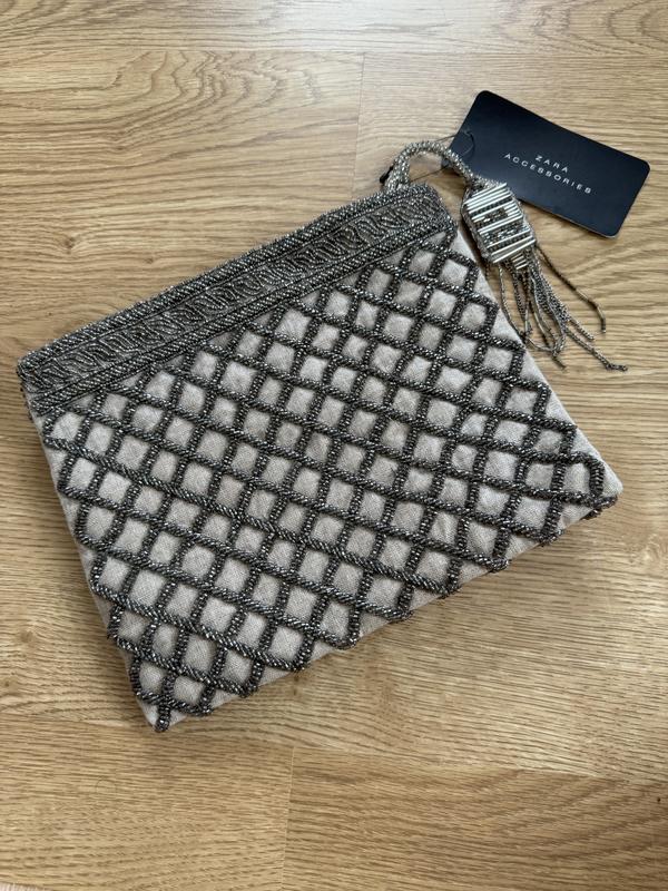 Клатч від ZARA Accessories – втілення елегантності й стилю! Цей розкішний аксесуар виконаний у ніжному світлому відтінку та повністю розшитий бісером у вигляді витонченого сітчастого візерунку. Блиск бісеру додає йому святкового шарму, роблячи ідеальним вибором для вечірки, романтичного побачення чи особливої події. ✔️ Бренд: ZARA ✔️ Матеріал: тканина з бісерною вишивкою ✔️ Актуальний дизайн, що поєднує класику й сучасність ✔️ Компактний розмір – помістить усе необхідне Це не просто сумочка, а справжній акцент вашого образу. Вона виглядає дорого, стильно й привертає увагу з першого погляду. 💎 Ідеальний подарунок для себе чи близької людини.