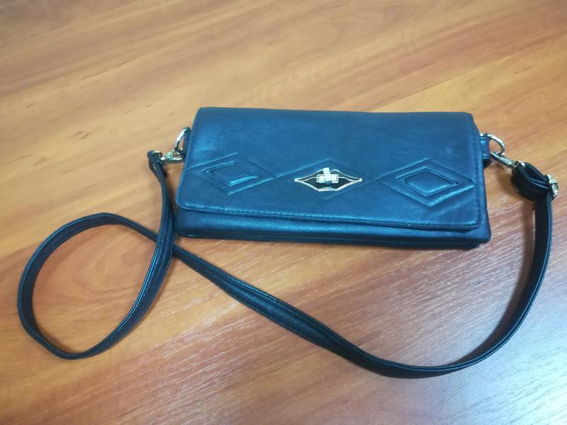 Оригинальная сумка клач на длинной ручке. Вместительная. Три отделения. Очень удобная. Обратите внимание на последнеее фото. Указан мини-дефект - необходимо пришить молнию. Размеры: -длина 30см, -высота 14см, -ширина дна 4см, -длина ручки 108см.