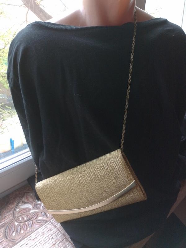 Сумочка, цвет -золотой, ярче, чем на последнем фото, длина -24, высота-12 см,,43 длина цепочки от основания сумки, до -условно середины, цепь, не снимается , помещается-кошелек, телефон, ключи, 4 маленьких пятнышка, которые не влияют на общий вид, цепь, если ненужна прячется внутрь клатча