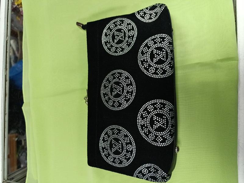 сумочка клатч..замш..черная..с орнаментом.мягкая..длинная цепь..красная