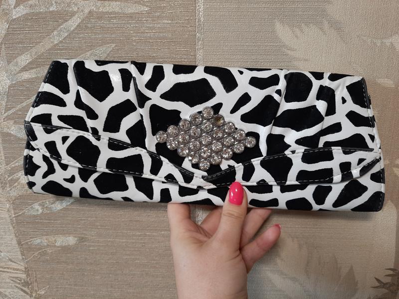 Клатч белый леопард ( "долматинец",со стразами) Длинна 31см, высота 12см очень удобный и легкий, подойдет под множество нарядов. Состояние идеальное
